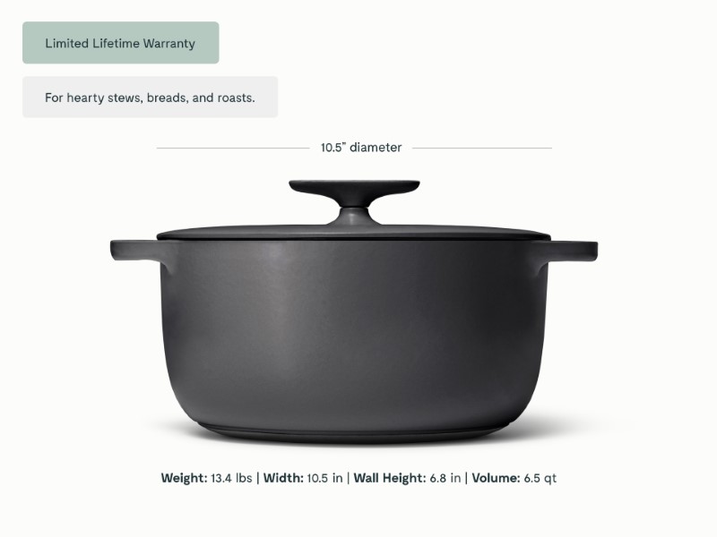6.5qt Dutch Oven with excellent heat retention for hearty stews, breads, and roasts.
