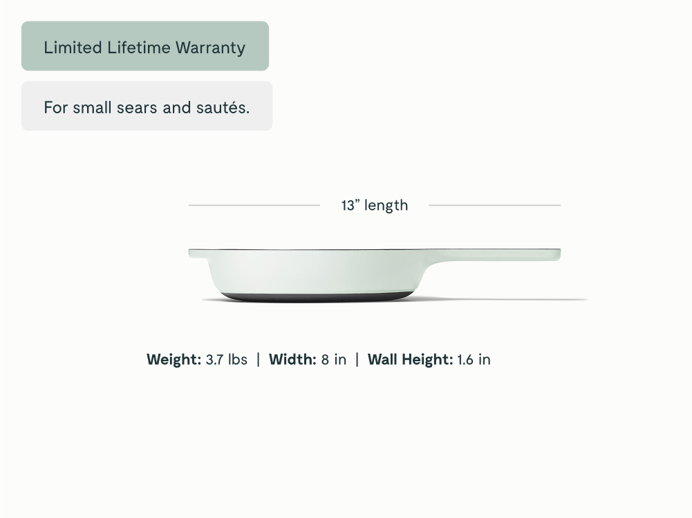 Cook conveniently with Caraway’s 8” Enameled Cast Iron Mini Skillet—lightweight, durable, and intentionally sized for smaller servings. Featuring a 3-layer, non-toxic enamel coating, this compact skillet delivers exceptional heat retention, even cooking, and effortless cleanup—for a lifetime of versatile, flavorful meals.