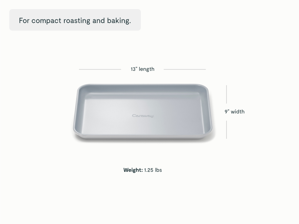 Simplify smaller servings with Caraway’s Small Baking Sheet. Designed for small portions, tight kitchens, and compact appliances, this non-toxic essential is perfect for baking and roasting for one to two. Thoughtfully crafted without forever chemicals, our proprietary non-stick ceramic coating offers effortless baking, easy cleanup, and peace of mind at every meal.