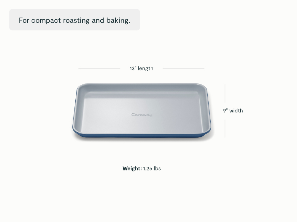 Simplify smaller servings with Caraway’s Small Baking Sheet. Designed for small portions, tight kitchens, and compact appliances, this non-toxic essential is perfect for baking and roasting for one to two. Thoughtfully crafted without forever chemicals, our proprietary non-stick ceramic coating offers effortless baking, easy cleanup, and peace of mind at every meal.